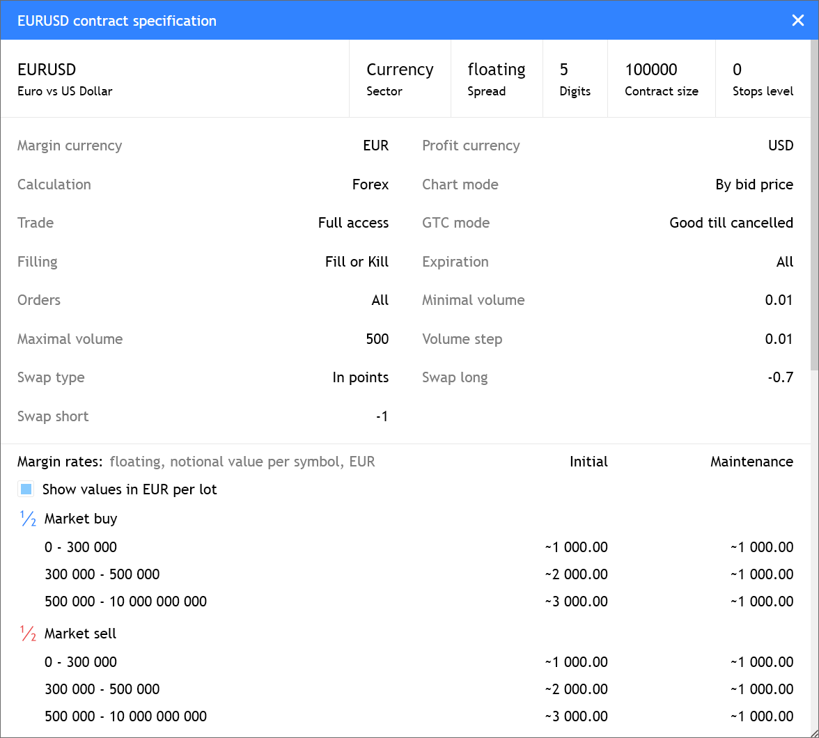 预付款的计算依据是规格窗口打开时的交易品种价格,而不是实时更新。因此,这些数值应被视为具有指示性。要根据当前价格重新计算数值,请重新打开交易品种规格。
